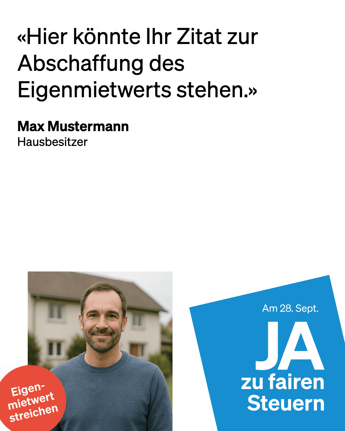Die Abschaffung des Eigenmietwerts beseitigt eine grosse Ungerechtigkeit. Endlich entfällt die fiktive Steuer auf ein Einkommen, das es gar nicht gibt. Die Reform entlastet Wohneigentümer – besonders Familien und ältere Menschen. Sie stärkt die Eigenverantwortung und bietet Anreize für Ersterwerber. Eine breite politische Allianz aus Bundesrat, Parteien, Eigentümern, Gewerbe und Wirtschaft stehen hinter der Reform.